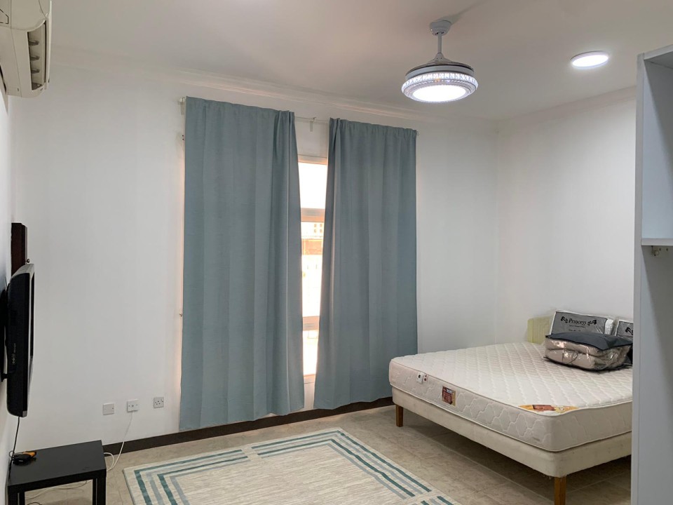 Furnished studio for rent in Hidd , on the third floor 200BD including electricity with limit 20BD .