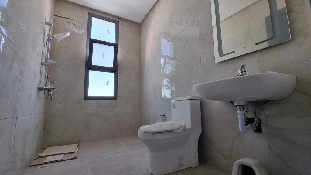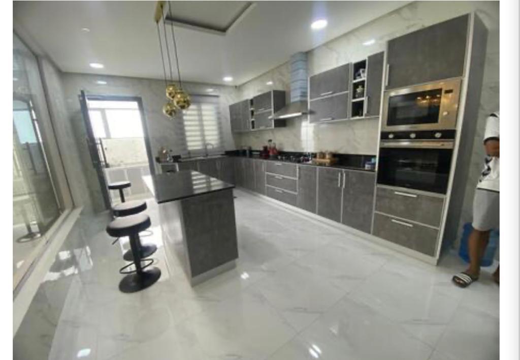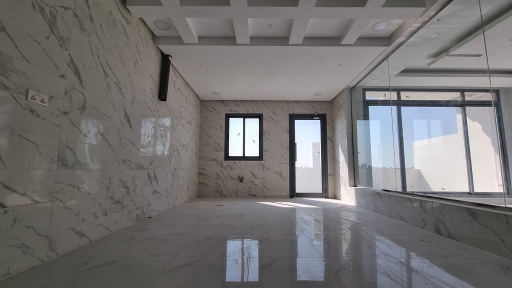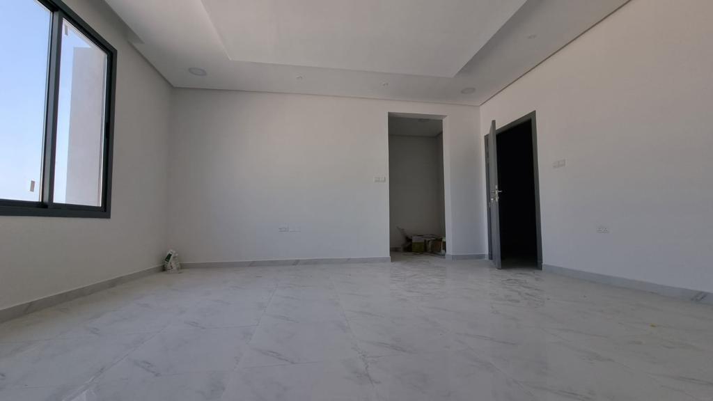 For sale a villa in Durrat Al Muharraq The land area is 177.4 square meters The building area is 450 square meters Free view It is located on two streets Consists of : 5 master bedrooms 6 bathrooms Two kitchens garage Store Two kitchens Laundry Room elevator Balcony It overlooks two streets Security cameras system The ground floor consists of: Spacious lounge A bathroom for the hall elevator Indoor kitchen Outdoor kitchen Garden in the back Two car garage First floor of: 3 master rooms lounge second floor : lounge Two master rooms Third Floor : Service room Laundry Room Maid's room with bathroom Demand: 142,000 BD